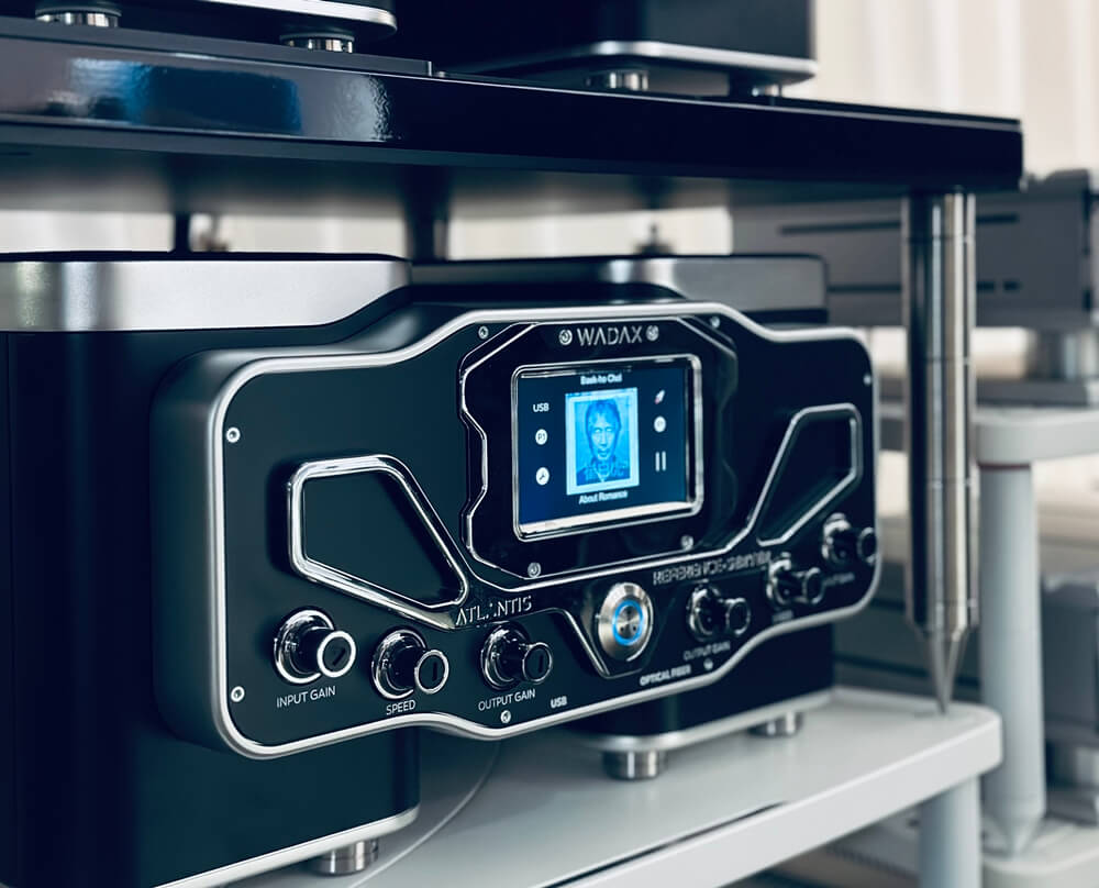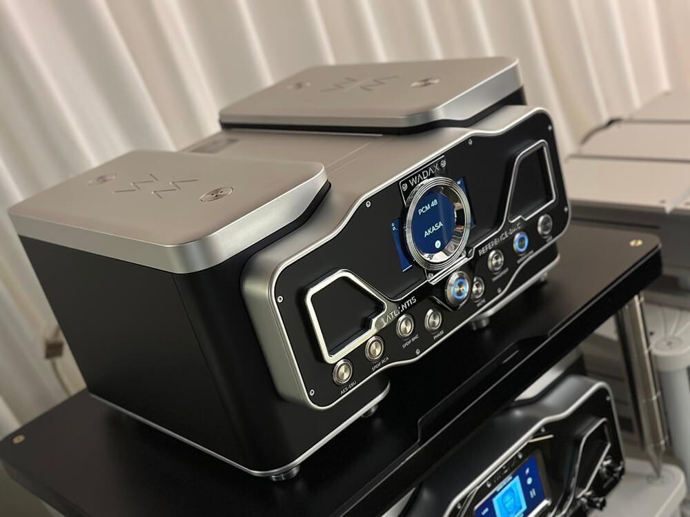 소스 기기는 무척 다양하다. 아날로그, 디지털 가리지 않고 이 쪽도 하이엔드 브랜드 일색. 간만에 보는 TW 어쿠스틱스의 Rave AC도 보이고 브링크만도 보인다. 가장 반가운 건 아무래도 와닥스다. 현재 WBF 같은 해외 포럼에서 전 세계 마니아들이 가장 손꼽는 디지털 기기를 만드는 브랜드다. 더 하이파이엔 Atalantis 서버와 Atalantis DAC가 세팅되어 있었다. 마치 핫셀블라드나 라이카의 과거 아날로그 카메라를 연상시키는 디자인이 정말 멋지다. 선을 쓰는 패턴은 마치 스페인의 로에베를 닮았다.
